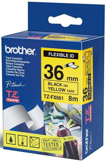 CINTA LAMINADA FLEXIBLE 36MMX8M AMARILLO / NEGRO BROTHER TZFX-661